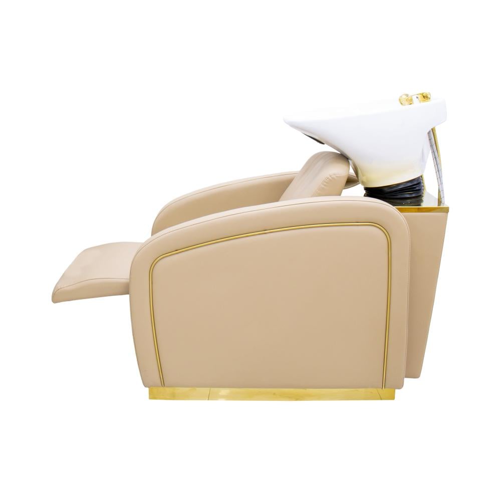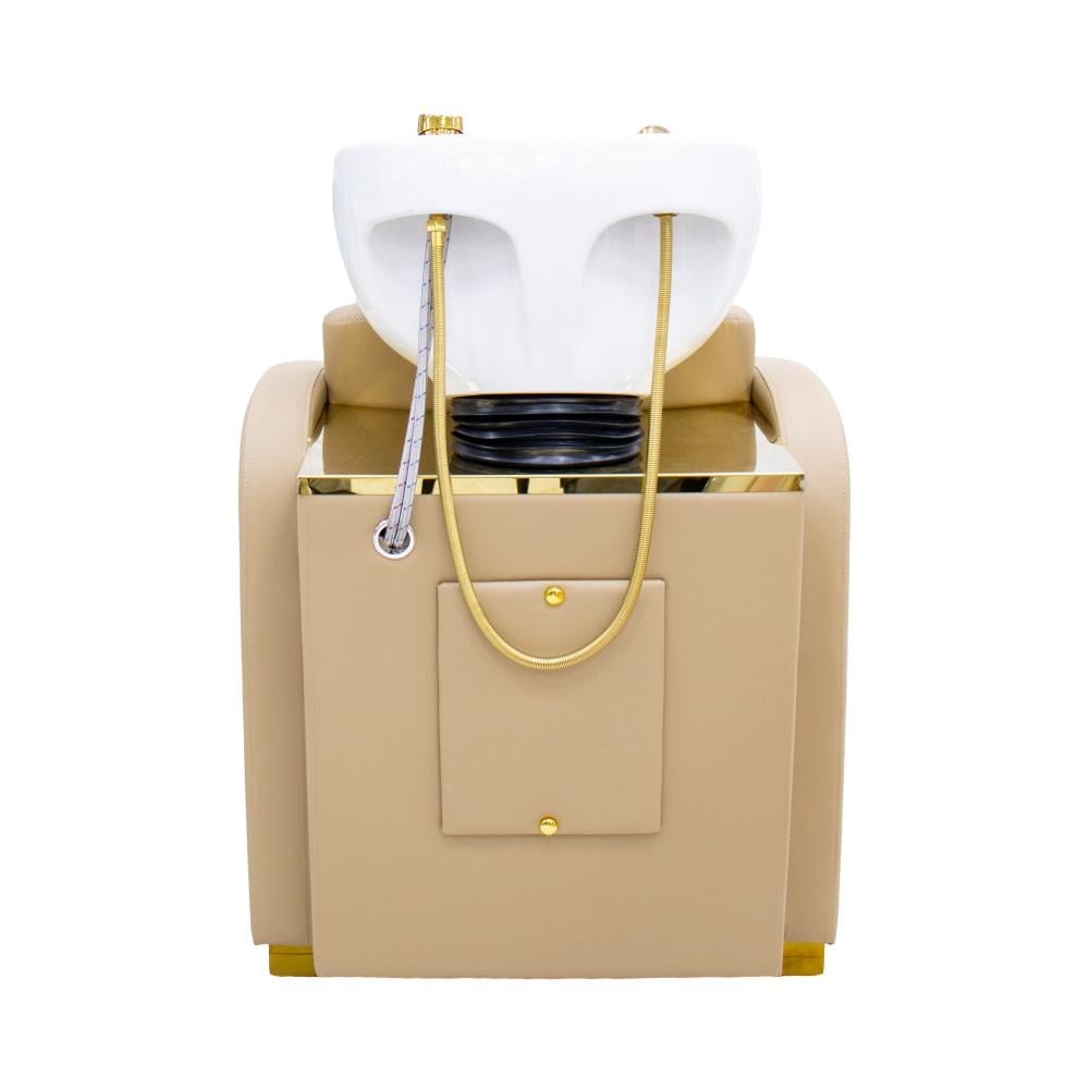 امنح صالونك لمسة من الرقي والاحترافية مع مغسلة الشعر AW-07، بتصميم أنيق بلون بيج فاخر ولمسات ذهبية جذابة. تجمع هذه المغسلة بين الراحة والجودة العالية، مما يجعلها مثالية لصالونات التجميل الراقية والمنتجعات الصحية.