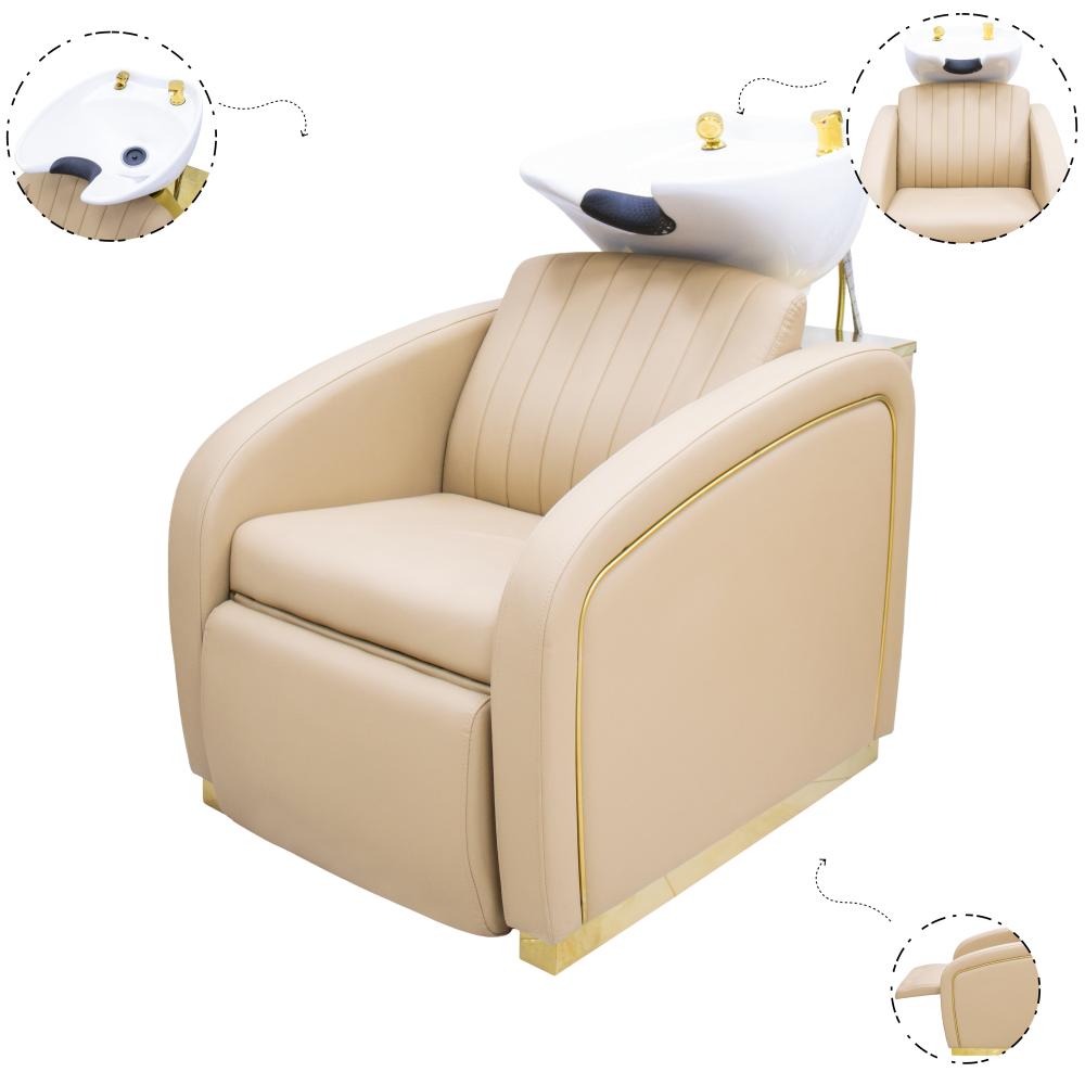 🧼 مغسلة شعر بيج فاخرة AW-07 | كرسي مدمج مع مغسلة لصالونات التجميل الراقية