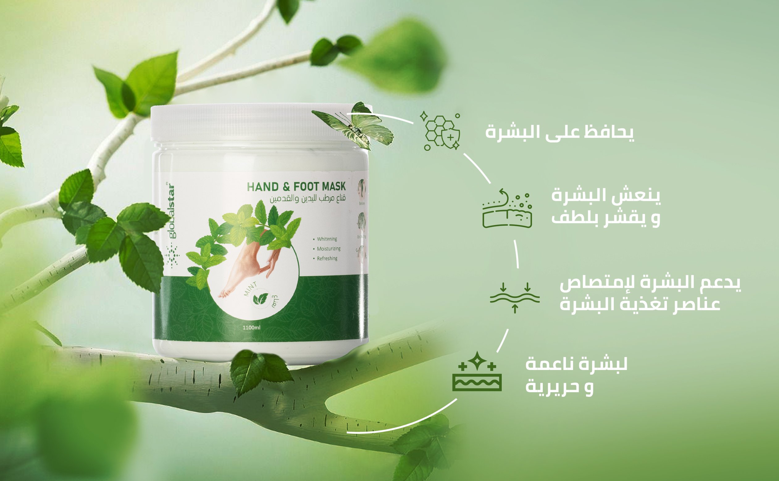 • يوضع القناع على بشرة الأيدي أو الأقدام