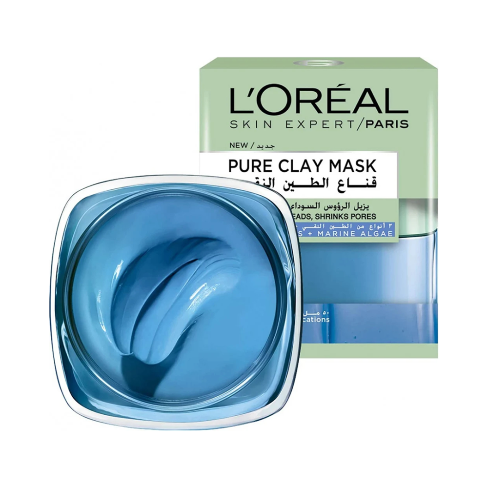 لوريال باريس قناع الطين النقي بخلاصة الطحالب البحرية يزيل الرؤوس السوداء ويشد المسامات - 50 مل