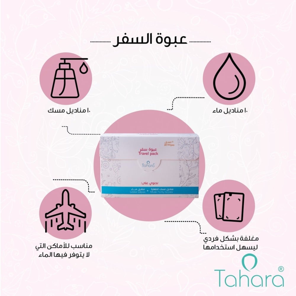 استمتعي بعلبة مناديل للسفر المضادة للبكتيريا 2 في 1 التي تنظف يديك، وجسدك، والمنطقة الحساسة. عبوة مناديل للسفر تتضمن منتجين؛ مناديل نسائية برائحة المسك لتنظيف وإزالة الروائح الكريهة من المنطقة الحميمة لتشعري بالانتعاش طوال الوقت. بالإضافة إلى مناديل للسفرلتنظيف يديك وجسدك. مفحوصه من قبل اطباءالجلديه.تأتي بحجم عبوة اقتصادية لتكون مثالية للرحلات العائلية.