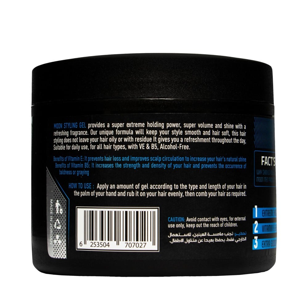هو جل تصفيف قوي يمنح شعرك ثباتًا يدوم حتى 24 ساعة. يتميز الجل بتركيبته الغنية التي تمنح شعرك اللمعان والحيوية.ثبات قوي: يمنح مون جل شعرك ثباتًا قويًا يدوم حتى 24 ساعة، مما يسمح لك بتصفيف شعرك بالشكل الذي تريده طوال اليوم، دون الحاجة إلى إعادة التصفيف بشكل متكرر.لمعان جذاب: يمنح مون جل شعرك لمعانًا جذابًا، مما يجعله يبدو أكثر حيوية وصحةسهولة التصفيف: يسهل مون جل تصفيف شعرك، مما يجعله خيارًا مثاليًا للأشخاص الذين يبحثون عن تصفيف سريع وسهل، حتى في الصباح الباكر.كيفية الاستخدامضع كمية مناسبة من الجل على شعرك الجاف أو الرطب، حسب طول شعرك وكثافته.قم بتوزيع الجل على شعرك باستخدام أصابعك أو مشط، لضمان تغطية جميع أجزاء شعرك.يمكنك استخدام مجفف الشعر لتعزيز الثبات واللمعان.