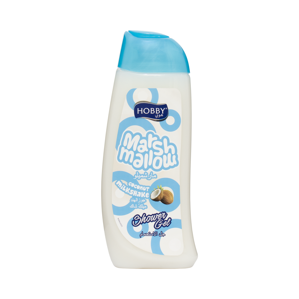 هوبي جل استحمام مارشميلو بجوز الهند واللبن المخفوق - 500 مل هو جل استحمام فاخر يجمع بين رائحة الجوز الهند الحلوة واللبن المخفوق الناعمة لتوفير تجربة استحمام فاخرة ومريحة.