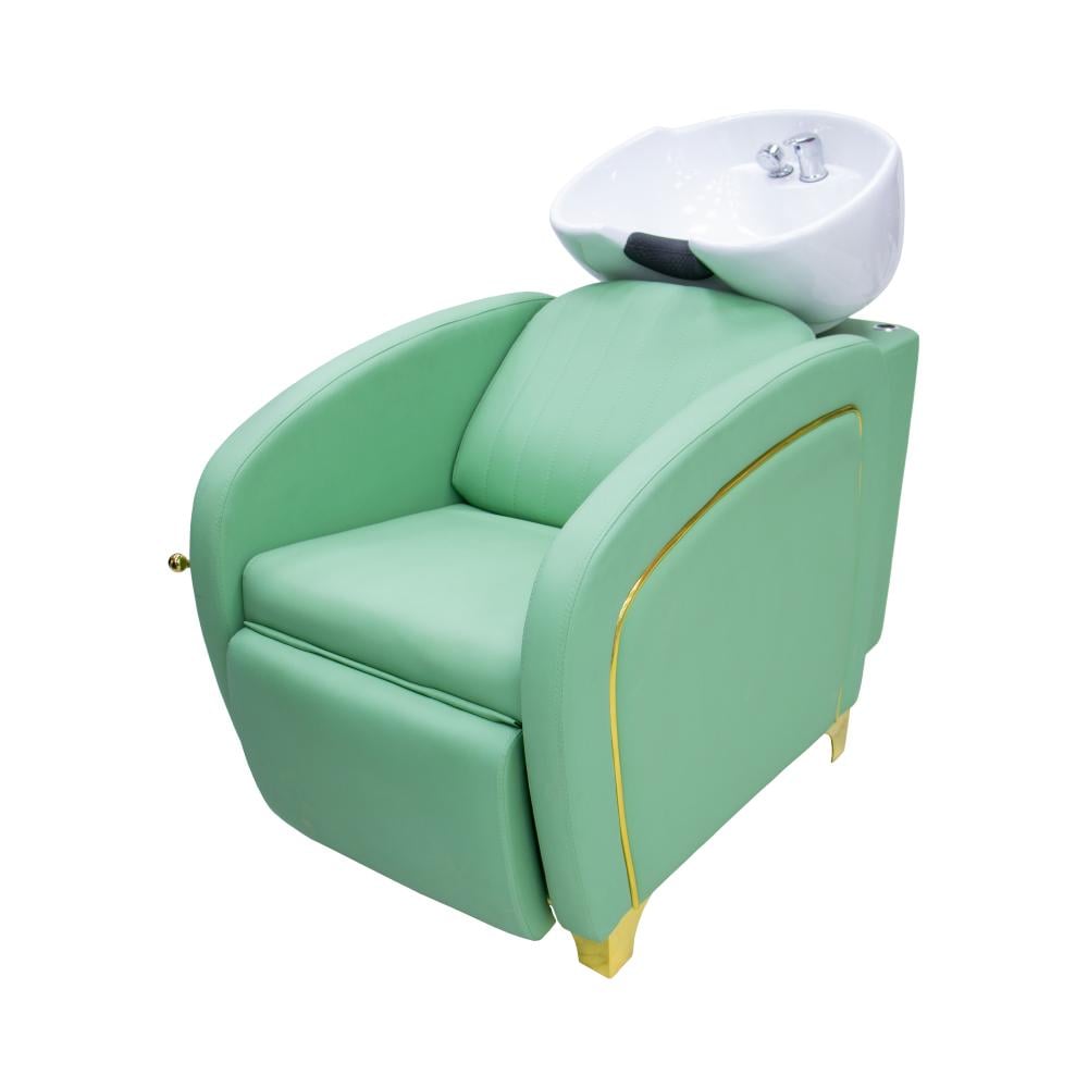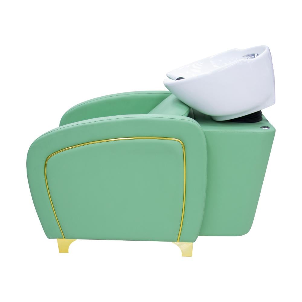كرسي المغسلة S6402DB بلونه الأخضر العصري، يجمع بين الراحة والفخامة في تصميم واحد. يتميز الكرسي بتنجيد فاخر مقاوم للماء ومسند ظهر مائل لتوفير أقصى درجات الراحة أثناء غسل الشعر. المغسلة المدمجة مصممة بعناية مع زاوية إمالة مناسبة لدعم الرقبة، ومزودة بنظام تصريف فعال يجعل عملية التنظيف سهلة وسلسة. خيار مثالي للصالونات التي تهتم بجودة الخدمة وراحة العملاء.