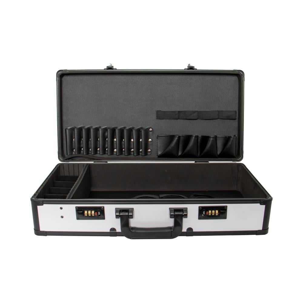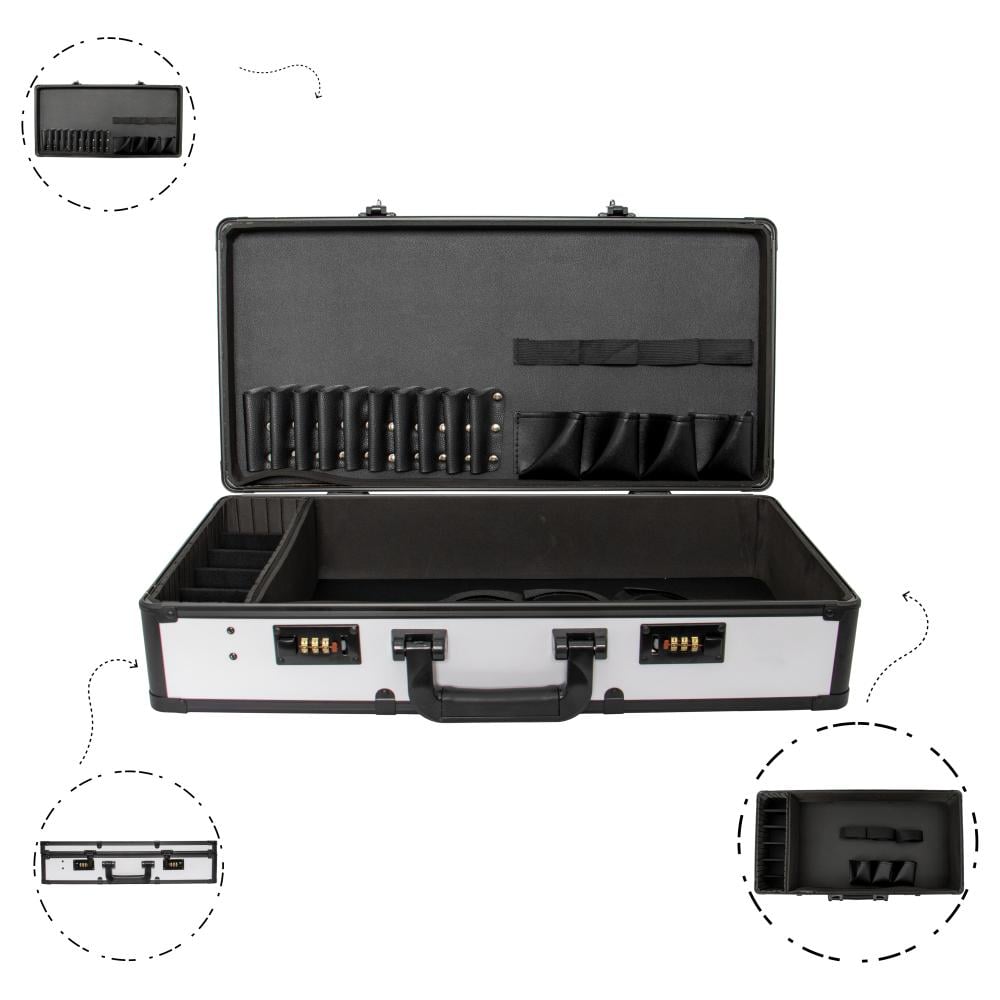 شنطة عدة الحلاقة من جلوبال ستار هي الحل الأمثل للمحترفين في مجال الحلاقة الذين يبحثون عن طريقة عملية وأنيقة لتنظيم وحمل أدواتهم. تأتي هذه الشنطة بتصميم متين وجذاب، مما يجعلها الخيار المثالي للحلاقين سواء كانوا يعملون في صالون أو متنقلين.