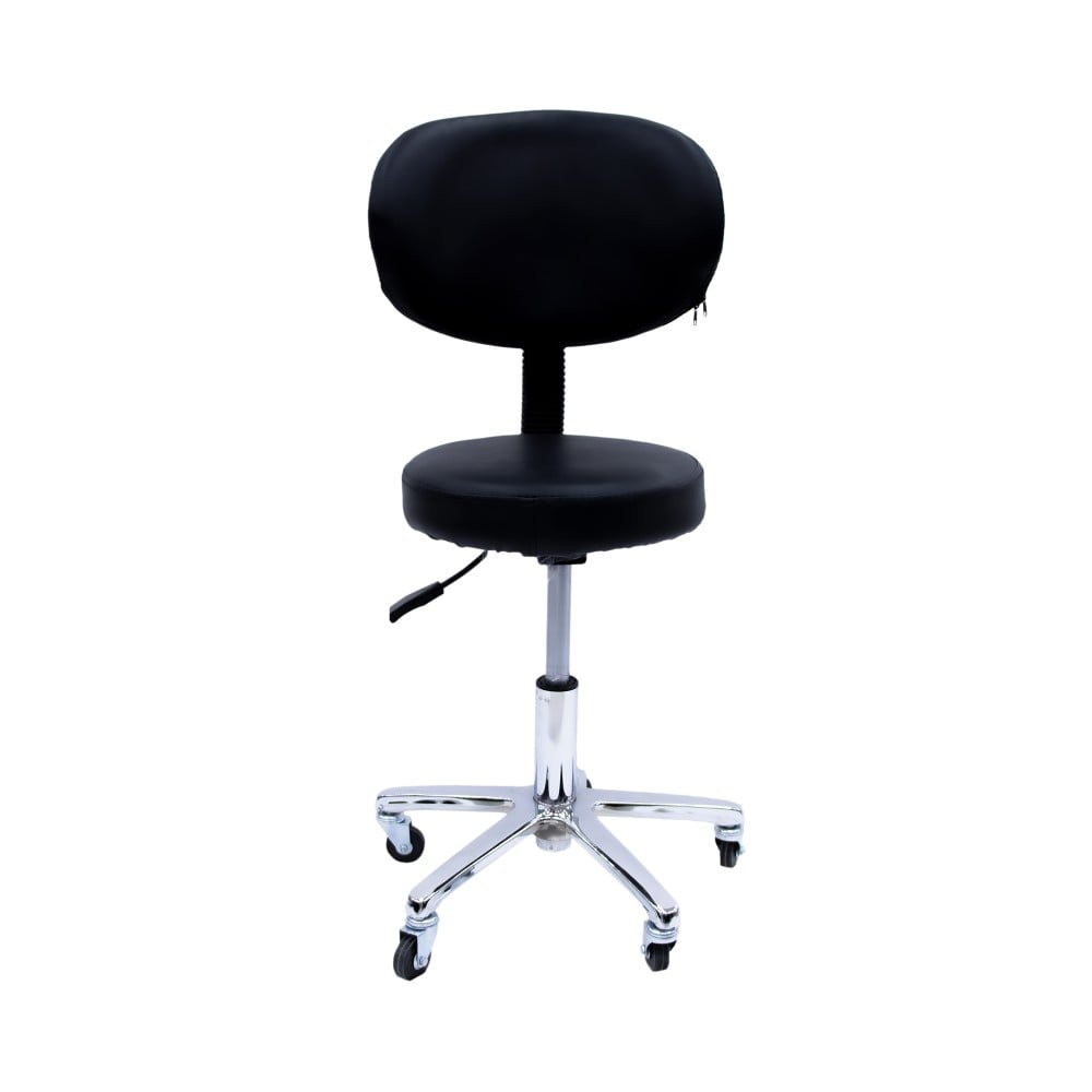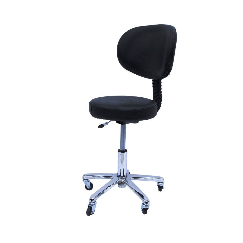 كرسي عصري مصنوع من الجلد المريح مع وسادة ظهر. قاعدة مقوسة مع عجلات مزدوجة عالية التحمل من أجل حركة سلسة. مكبس هيدروليكي لتعديل الارتفاع حسب الرغبة.