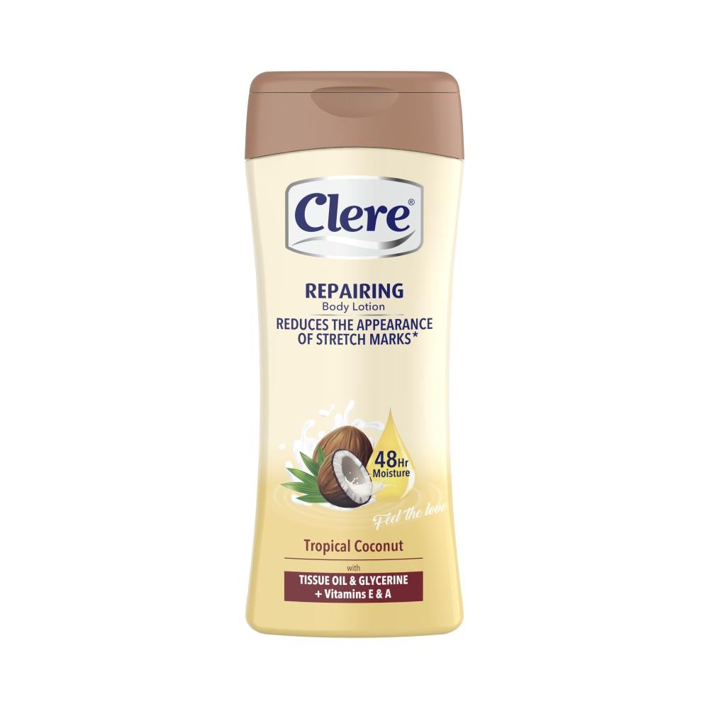 استمتعي بترطيب فائق لبشرتك مع لوشن الجسم بجوز الهند من كلير. مدعم بزيت الجلسرين و الفيتامينات A و E و خليط من الفيتامينات الأخرى لمحاربة علامات التمدد و جفاف البرشة