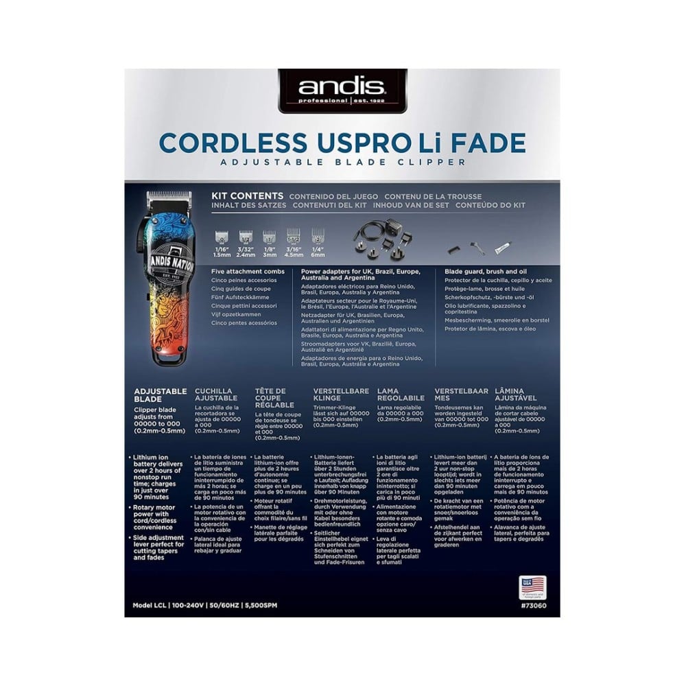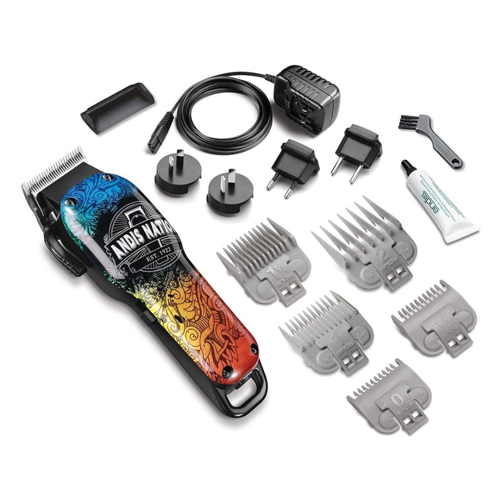 تصميم Andis Nation النابض بالحياة والأنيق ، والذي يتميز بشفرات الفولاذية الكربونية الدقيقة