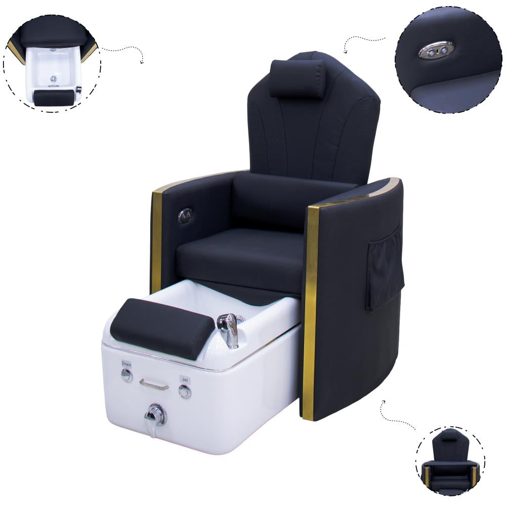 💺 كرسي بديكير ومساج أسود فاخر AW-03 | تصميم عصري بخيارات جاكوزي ومياه ساخنة