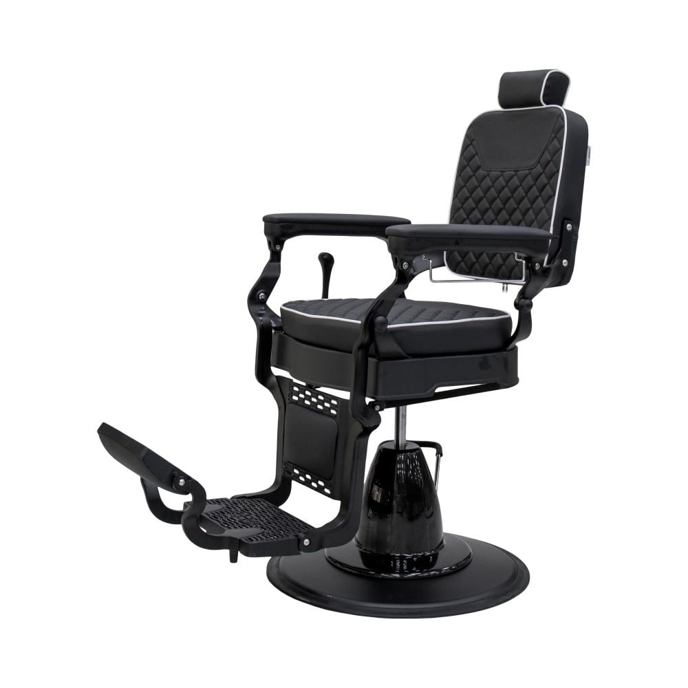 مسند قدم ورأس قابل للتعديل: تم تصميم مسند القدمين والرأس ليكونا قابلين للتعديل لتناسب احتياجات العميل. يتيح ذلك الحلاق تحقيق زوايا مختلفة أثناء قص الشعر أو الحلاقة، مما يوفر مرونة كبيرة.
