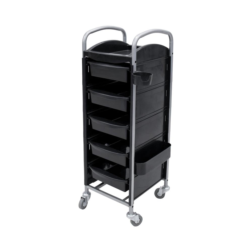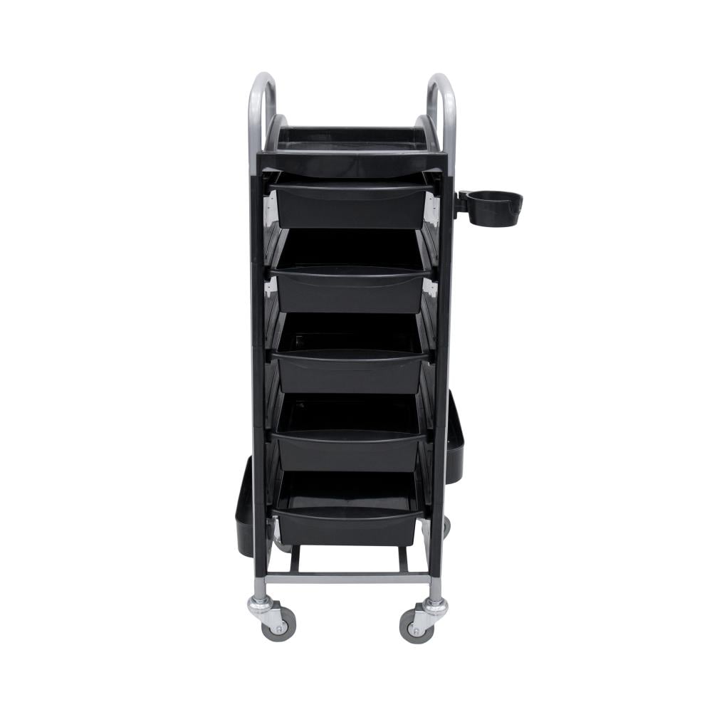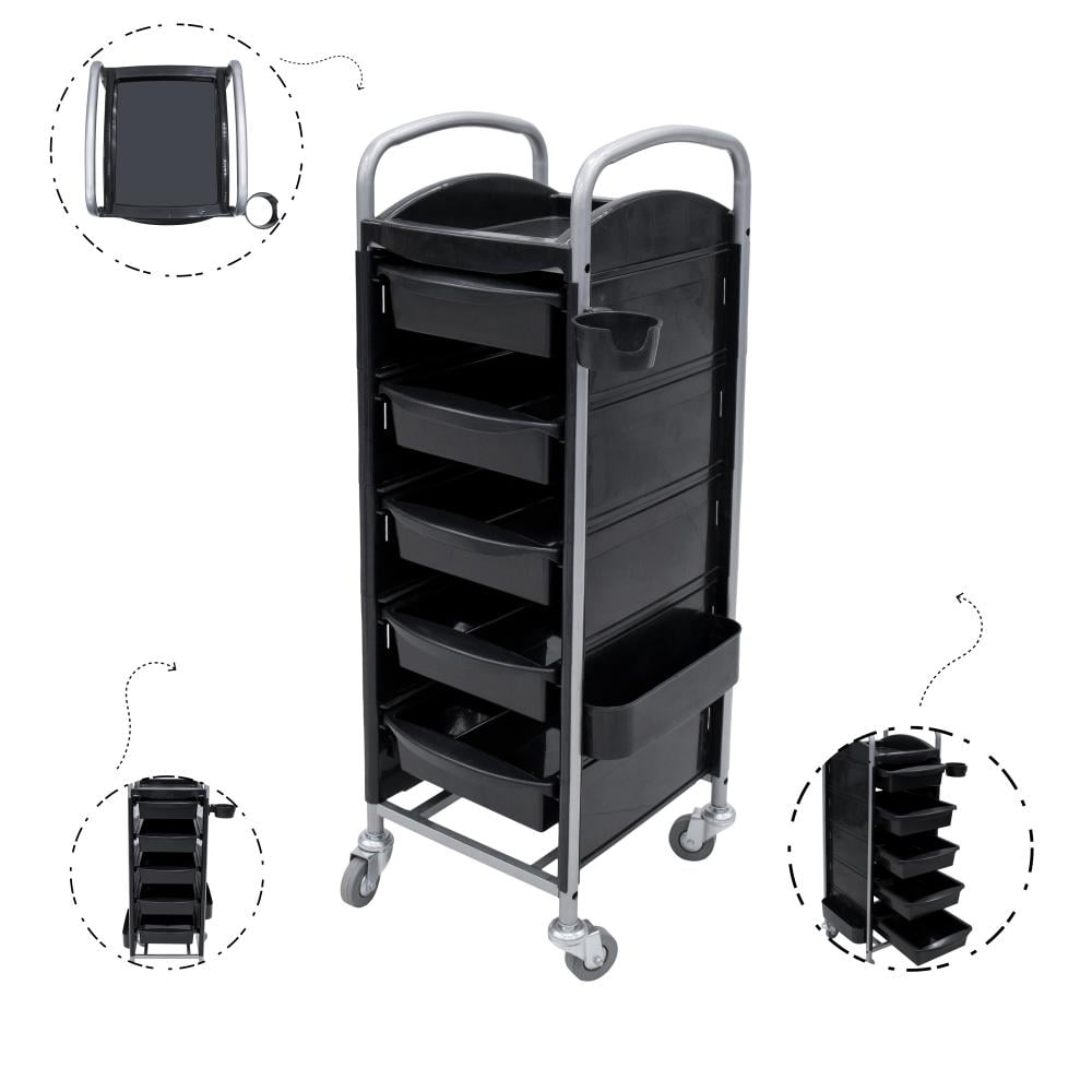 ممتازة للمشاغل و لمحترفي تصفيف الشعر والمنتجعات الصحية ، مع 6 طبقات من التصميم ، و 5 أدراج قابلة للفصل ، ومساحة كافية للعديد من الأدوات والمنتجات [مواد السلامة] العربة مصنوعة من البلاستيك المتين ، مواد مقاومة للاهتراء ، هيكل مستقر ممتاز.