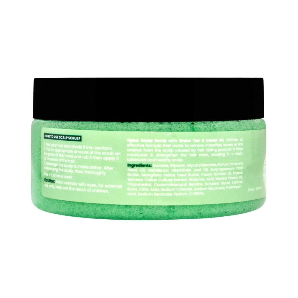 مقشر فروة الرأس من أوبلس بتركيبة الشاي الأخضر يعمل برقة و لطف على فروة الرأس و يركز على أهم العوامل لتقوية جذور الشعر :