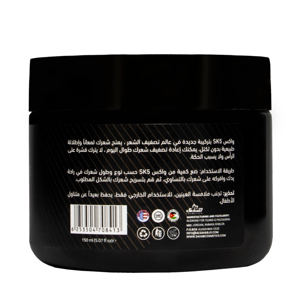أحدث صيحة في تصفيف الشعر! احصل على شعر رائع وأنيق مع اكوا واكس من SK5 بحجم 150 مل!اكوا واكس يعتبر حلاً رائعاً لتصفيف الشعر بمظهر طبيعي ومتألق، فهو يوفر القوة والثبات لتصفيفة الشعر بشكل مثالي ويمنحه لمعانًا جذابًا دون أن يترك أثرًا دهنيًا.