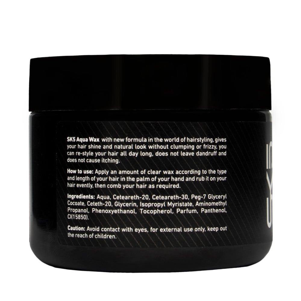 احصل على تصفيف شعر مثالي وراقٍ مع اكوا واكس من SK5. ضع كمية صغيرة على يديك ودلكها بلطف على شعرك، ثم قم بتصفيف شعرك وتشكيله كما ترغب للحصول على النتيجة المرغوبة.