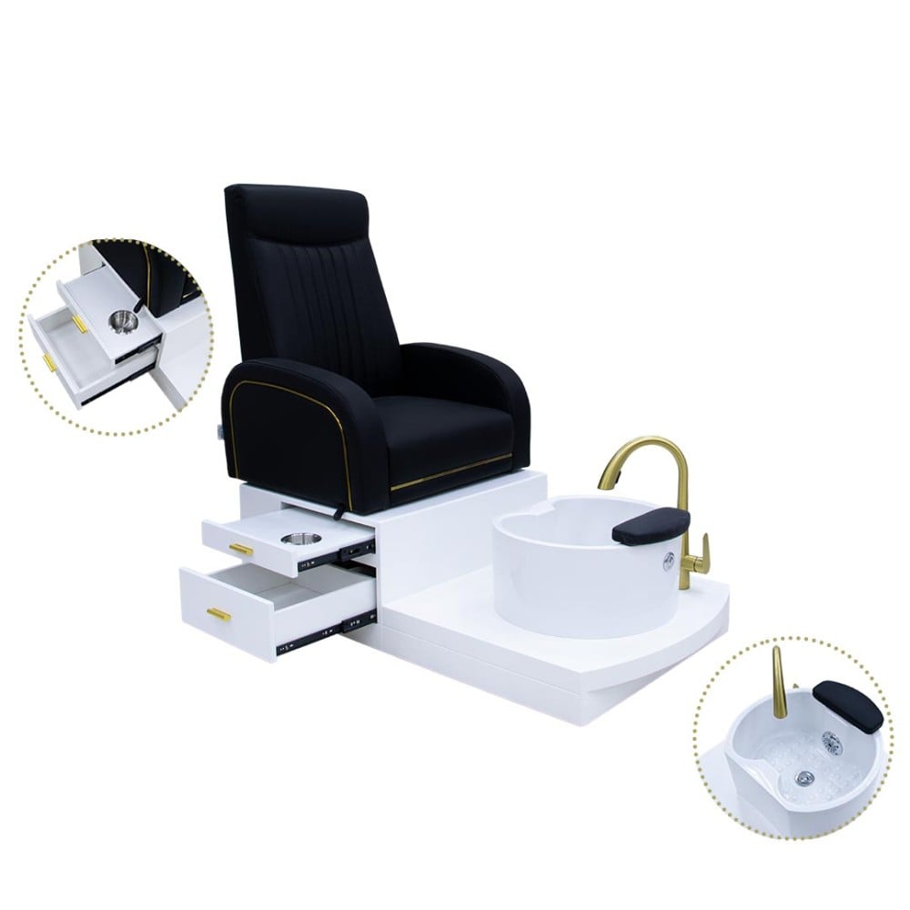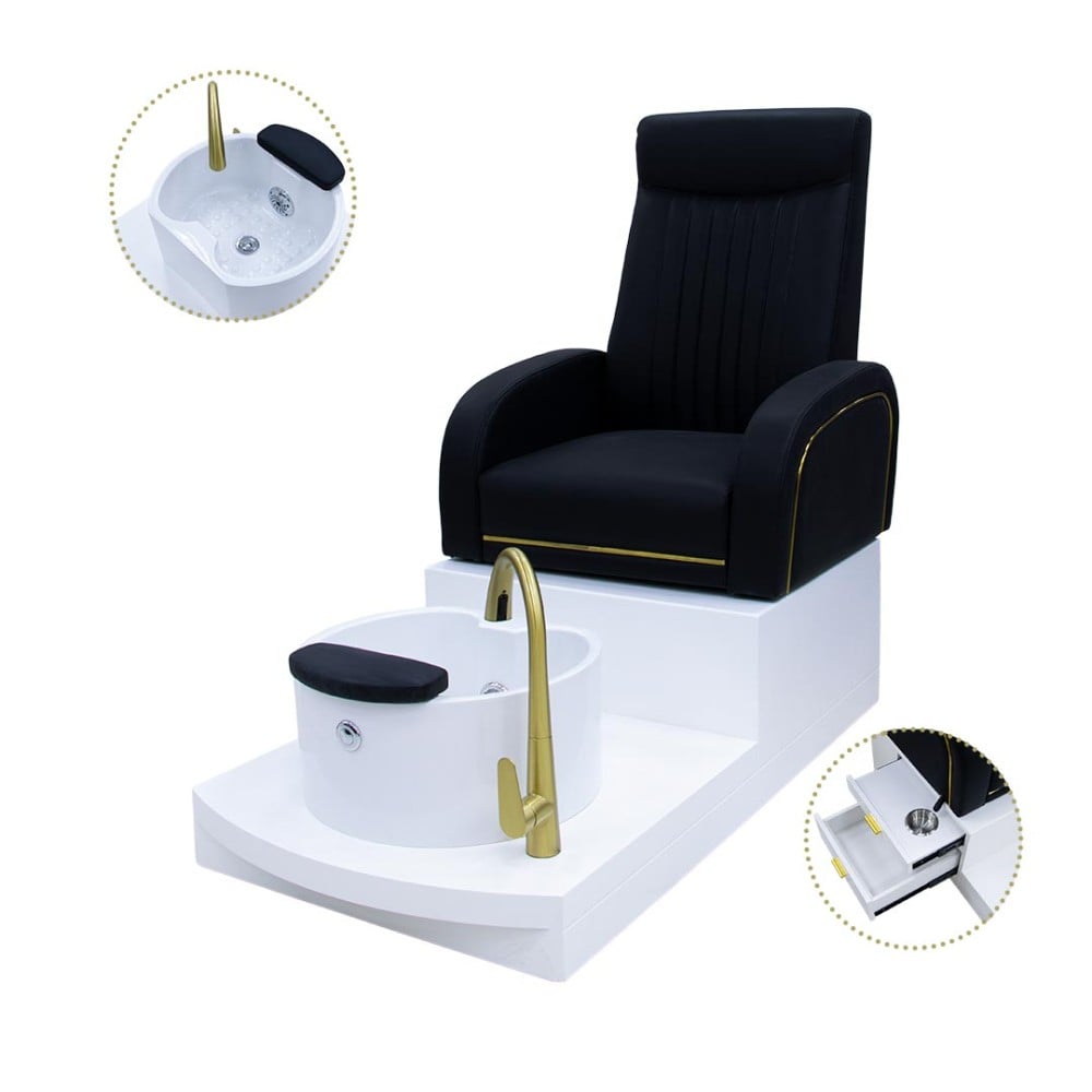 2. راحة ممتازة: مصنوع من مواد فاخرة، يضمن هذا الكرسي أقصى قدر من الراحة لعملائك أثناء جلسة العناية بالأقدام. توفر الوسادة الفخمة والتصميم المريح دعمًا ممتازًا لأسفل الظهر، مما يسمح للعملاء بالجلوس والاسترخاء.