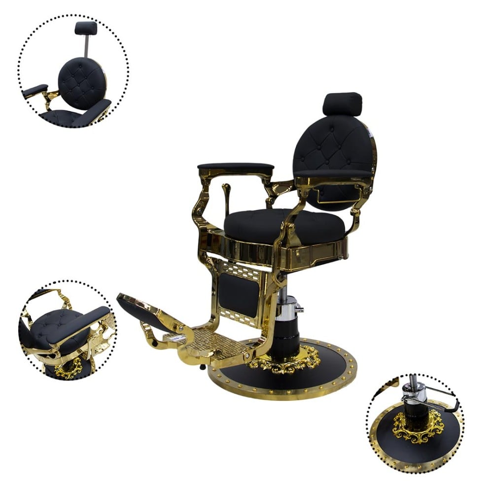 كرسي حلاقة كلاسيك ذهبي AW-9163 هو تجسيد للأناقة والأداء العالي في صالون الحلاقة. إنه يجمع بين التصميم التقليدي الرائع والراحة الفائقة لتقديم تجربة حلاقة استثنائية للزبائن. وإليك بعض التفاصيل عن هذا المنتج الرائع: