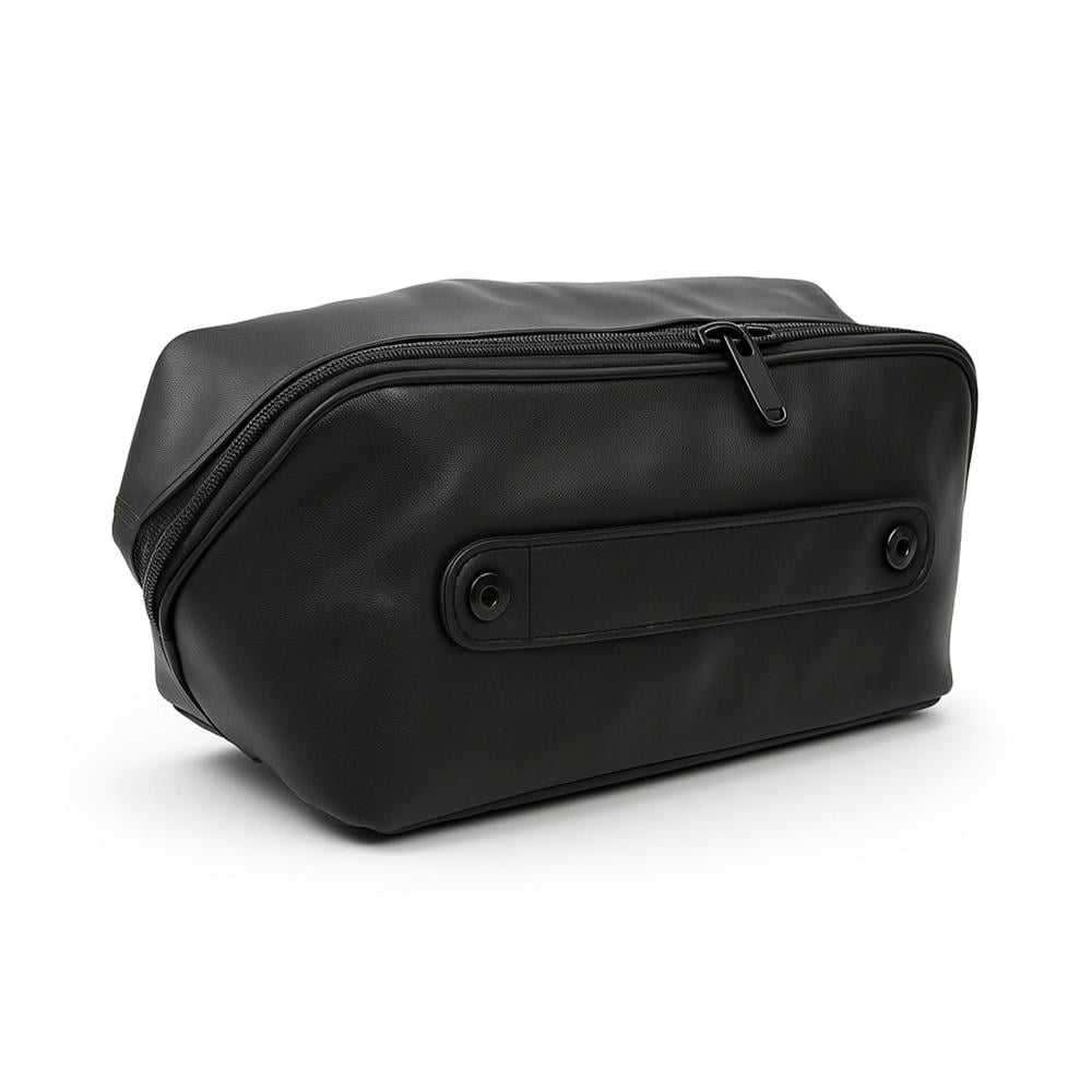 • تصميم داخلي ذكي: يحتوي على جيوب متعددة وحوامل مرنة لتثبيت الأدوات مثل المقصات، الأمشاط، الماكينات، والفرش.