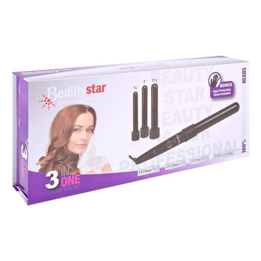 بيوتي ستار مكواة تجعيد الشعر تحتوي على ثلاث مقاسات (19-25-32)،ومقبض يسهل الإمساك به ،للحصول على تصفيفة شعر ذات مظهر احترافي في كل مرة.
