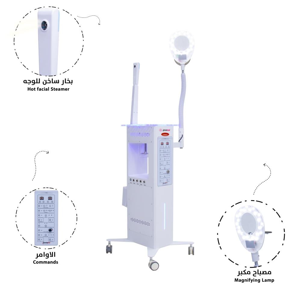 جهاز متكامل يقدم حلولًا احترافية متعددة في مجال العناية بالبشرة والجمال، يجمع بين أحدث التقنيات لتوفير عناية شاملة في صالونات التجميل والعيادات.