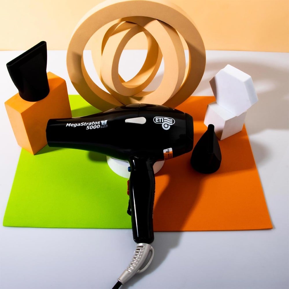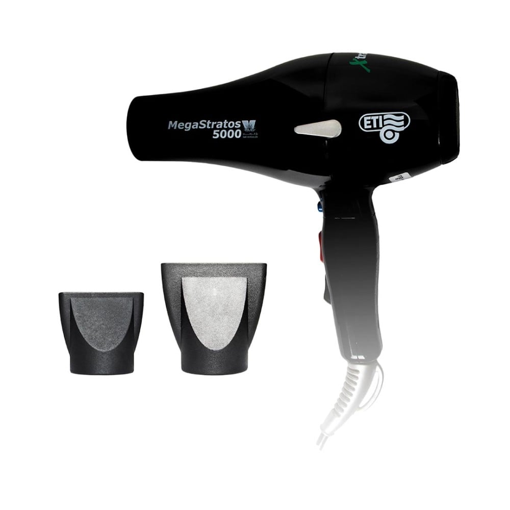 ETI Mega Straus 5000 - مجفف شعر إيطالي ، مصنوع من مواد عالية الجودة ، بسرعتين ، ساخن وبارد ، فلتر هواء ، لون أسود ، للاستخدام المهني والشخصي