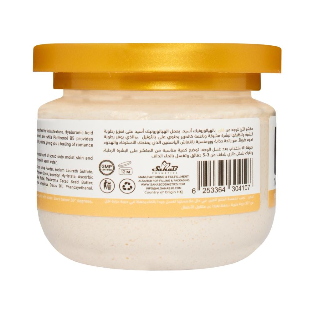 The rice scrub is characterized by its soft and delicate texture, suitable for all skin types, and it contains the properties of rice hulls, which are famous for their ability to lighten the skin and restore the skin barrier to keep it healthy and fight pimples and the effects of aging.