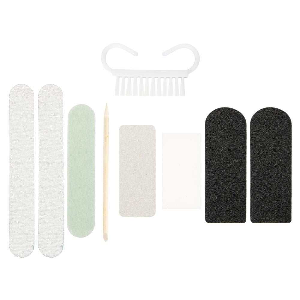 Comfortable to use pedicure tools It has a comfortable handle and a strong and smooth plastic handle to hold it comfortably without feeling tired Durable and long in use. It contains finger separators, a multi-tasking pedicure brush, and more nail care pieces